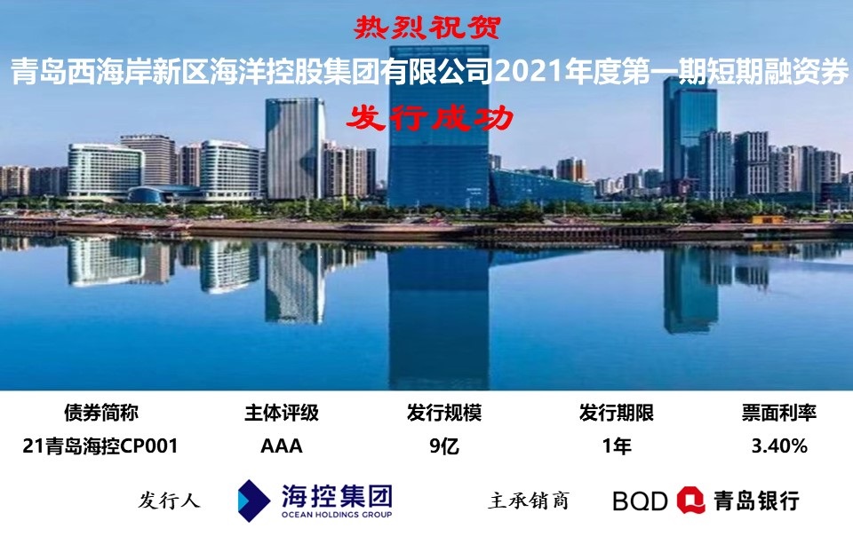 3月2日,海控集團(tuán)成功發(fā)行2021年第一期短期融資券,也是今年新區(qū)首支短期融資券,發(fā)行規(guī)模9億元,發(fā)行期限365日,發(fā)行利率3.40%,認(rèn)購倍數(shù)為2.15倍。