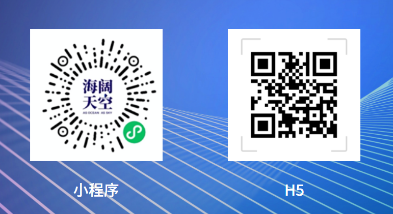 2.點擊網站右上方"海闊天空"進入,掃描小程序碼或H5二維碼。