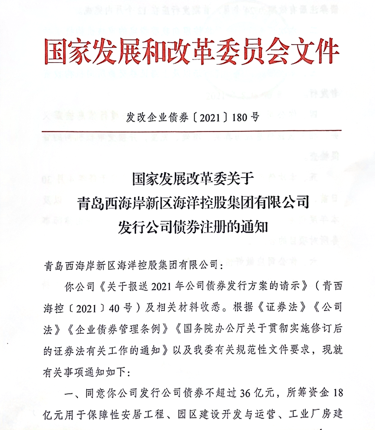 8月30日,??丶瘓F成功獲得國家發展和改革委員會優質企業債批復,額度36億元,標志著青島市第一支優質企業債券成功獲批。